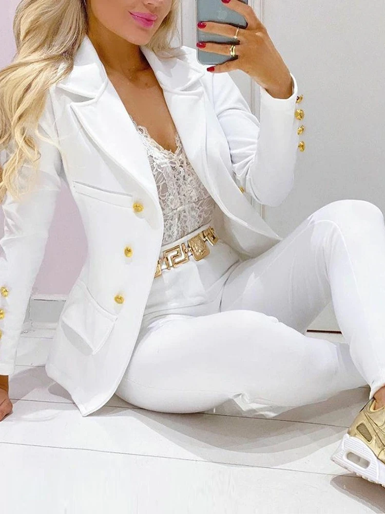 Summer Women's Elegant Casual Fashion 2 Piece Set Women Suit Blazer and Pants Two Piece Ladies Office Wear Women Pink Suit White